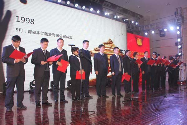 12月31日,2014年華仁藥業(yè)年終總結(jié)表彰大會暨2015元旦聯(lián)歡晚會在青島大學(xué)國際學(xué)術(shù)交流中心隆重召開。華仁藥業(yè)董事長梁富友,華仁世紀(jì)集團(tuán)副總裁褚旭,華仁藥業(yè)總經(jīng)理張春強(qiáng)、常務(wù)副總經(jīng)理初曉君,各事業(yè)部(中心)子公司負(fù)責(zé)人,受表彰人員、經(jīng)理級以上人員共計400余人參加了本次盛會。