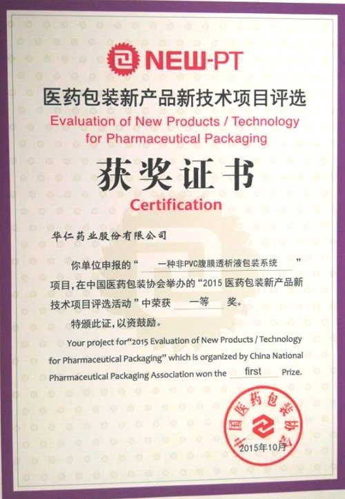 近日,華仁藥業(yè)藥品輸液包裝材料開發(fā)工作取得顯著成果,在輸液制袋膜材、配件接口以及全套非PVC腹膜透析液包裝系統(tǒng)不同環(huán)節(jié)共有三項(xiàng)課題獲得了2015年“新產(chǎn)品新技術(shù)項(xiàng)目評(píng)選活動(dòng)”兩個(gè)一等獎(jiǎng),一個(gè)二等獎(jiǎng)。