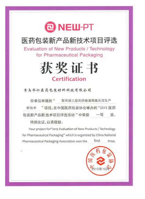 據(jù)了解,在第75屆中國(guó)國(guó)際醫(yī)藥原料藥/中間體/包裝/設(shè)備交易會(huì)上,中國(guó)醫(yī)藥包裝協(xié)會(huì)發(fā)布了2015年“新產(chǎn)品新技術(shù)項(xiàng)目評(píng)選活動(dòng)”評(píng)選結(jié)果。華仁藥業(yè)首次參選,以“聚丙烯三層共擠輸液用膜共混生產(chǎn)新技術(shù)”、“自封式塑料輸液軟袋組合接口”、“一種非PVC腹膜透析液包裝系統(tǒng)”三個(gè)課題分別獲得了一等獎(jiǎng)、二等獎(jiǎng)、一等獎(jiǎng)的好成績(jī)。