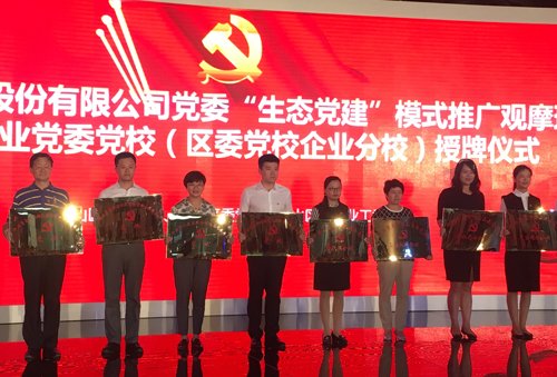 我公司與特銳德電氣、黃海制藥、天寶國(guó)際四家企業(yè)成為首批4家企業(yè)黨校。公司黨委組織委員王君紅、企管中心總監(jiān)劉萍代表公司黨委上臺(tái)接受授牌并合影留念。