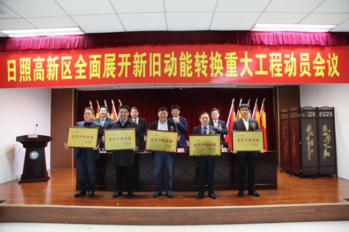 3月13日,在日照高新區(qū)召開的全區(qū)新舊動(dòng)能轉(zhuǎn)換重大工程動(dòng)員會(huì)議上,日照公司榮獲高新區(qū)“2017年度十佳企業(yè)”榮譽(yù)稱號(hào)。日照公司總經(jīng)理舒文代表公司上臺(tái)領(lǐng)獎(jiǎng)