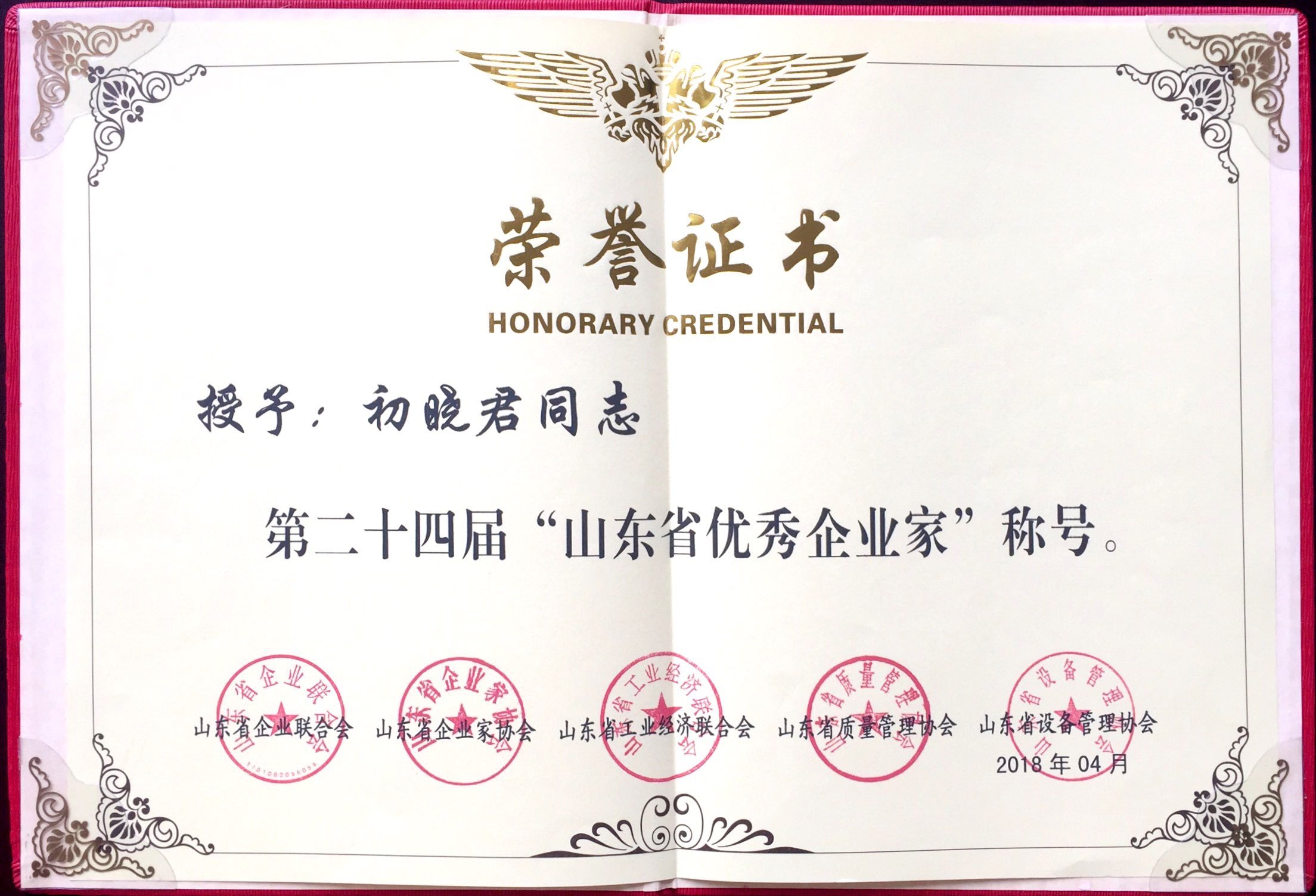 4月25日,由山東省經(jīng)濟和信息化委員會、山東省企業(yè)聯(lián)合會、山東省企業(yè)家協(xié)會聯(lián)合舉辦的“2018年新舊動能轉(zhuǎn)換專題培訓暨山東省企業(yè)家年會”在淄博召開,中國企業(yè)聯(lián)合會領導、國內(nèi)著名經(jīng)濟學家、知名企業(yè)家、省經(jīng)信委領導、省“五會”主要負責人、第二十四屆山東省優(yōu)秀企業(yè)家候選人等共300余人參會。本次會議旨在激發(fā)廣大企業(yè)家創(chuàng)新創(chuàng)業(yè)的積極性、主動性和創(chuàng)造性,弘揚企業(yè)家創(chuàng)新精神和工匠精神,發(fā)揮企業(yè)家示范作用,經(jīng)省“五會”推薦認定,公司執(zhí)行總裁初曉君榮獲“第二十四屆山東省優(yōu)秀企業(yè)家”榮譽稱號。