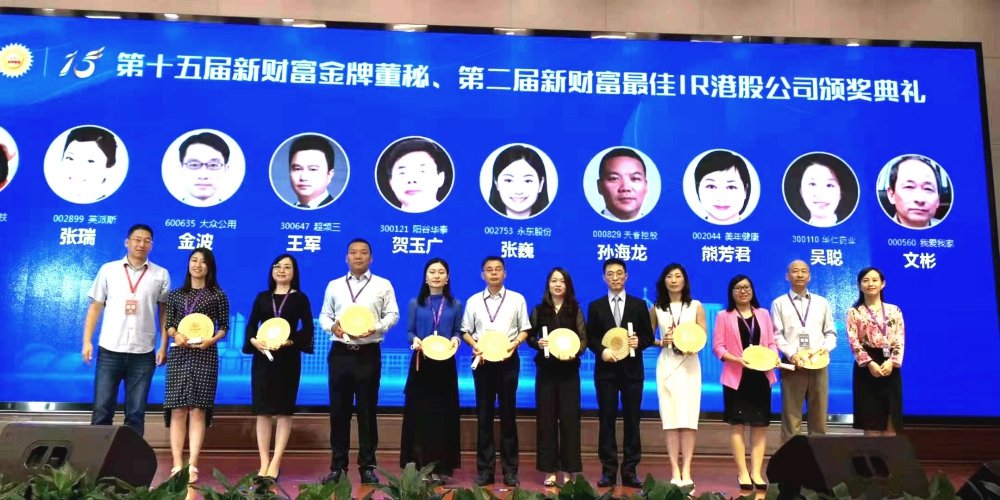 9月5日,由新財(cái)富聯(lián)合李滄區(qū)人民政府共同主辦的“2019新財(cái)富上市公司并購年會暨新財(cái)富第十五屆金牌董秘、第二屆新財(cái)富最佳IR港股公司頒獎盛典”在青島市李滄區(qū)國際院士港隆重召開,來自全球各地市值近80000億的200+上市公司高管、資本精英齊聚一堂,挖掘資源整合潛力。年會現(xiàn)場同期舉辦第十五屆新財(cái)富金牌董秘、第二屆新財(cái)富最佳IR港股公司頒獎典禮,公司副總裁兼董事會秘書吳聰在來自于A、B股市場2006家上市公司的2007位候選董秘中脫穎而出,獲評“第十五屆新財(cái)富金牌董秘”榮譽(yù)稱號。