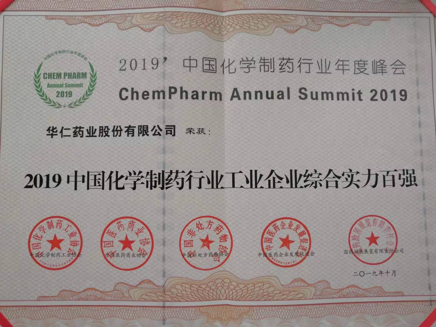10月10日,“2019中國化學制藥行業(yè)年度峰會、《制藥工業(yè)藍皮書》發(fā)布會暨中國化學制藥工業(yè)協(xié)會九屆四次理事(擴大)會”在江西省南昌市成功舉辦。會議期間發(fā)布了由中國化學制藥工業(yè)協(xié)會、中國醫(yī)藥商業(yè)協(xié)會、中國非處方藥物協(xié)會、中國醫(yī)藥企業(yè)發(fā)展促進會、國藥勵展展覽有限責任公司共同組織推薦的“2019中國化學制藥行業(yè)優(yōu)秀企業(yè)和優(yōu)秀產(chǎn)品品牌”榜,公司榮獲“2019中國化學制藥行業(yè)工業(yè)企業(yè)綜合實力百強”榮譽稱號。