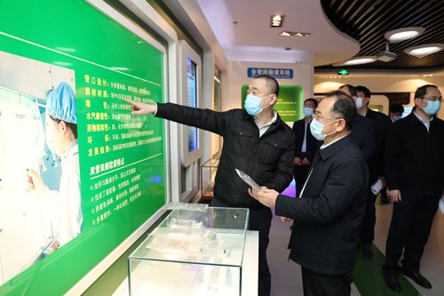 在青島華仁輸液文化博物館,楊董事長向宋書記就公司發(fā)展歷程、疫情防控、生產(chǎn)經(jīng)營、人才引進、知識產(chǎn)權(quán)等工作進行了匯報,并對公司核心產(chǎn)品非PVC雙管雙閥軟袋輸液、腹膜透析液等的關(guān)鍵技術(shù)優(yōu)勢,醫(yī)療器械、醫(yī)用防護口罩生產(chǎn)情況以及公司在研新產(chǎn)品進展情況等內(nèi)容作了重點匯報介紹。