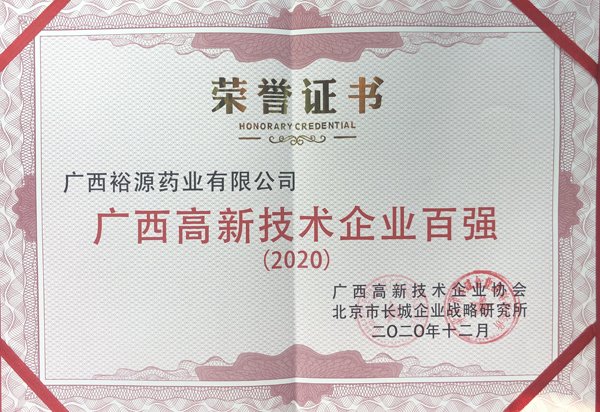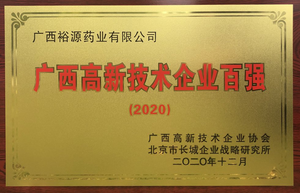 12月28日,2020年廣西高新技術(shù)企業(yè)百強(qiáng)企業(yè)榜單在南寧發(fā)布,華仁藥業(yè)(300110)全資子公司廣西裕源藥業(yè)有限公司榮獲“廣西高新技術(shù)企業(yè)百強(qiáng)”榮譽(yù)稱號。